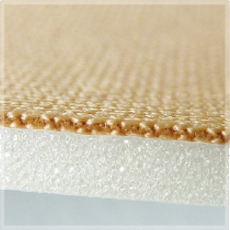 Polstermaterial. Lieferbar in Platten in Farbe Sand mit Polster bleu.